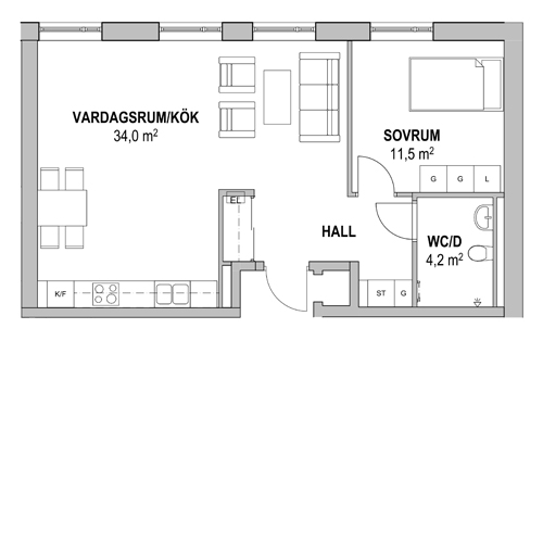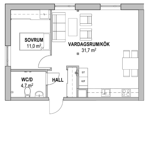 Här finns 1:or och 2:or och många av de gemensamma funktionerna som lokal, sällskapsrum, gym och tvättstuga.