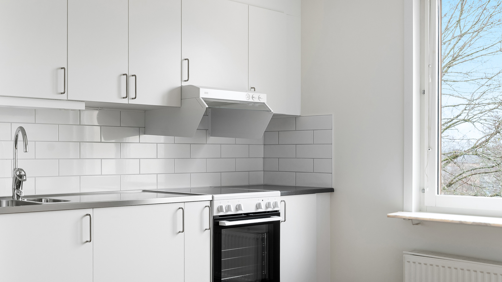 Trygghetsbostäderna har ljusa kök med vita skåpsluckor och vitt kakel. Köken är utrustade med spis med häll och är förberedda för installation av egen diskmaskin.